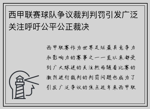 西甲联赛球队争议裁判判罚引发广泛关注呼吁公平公正裁决