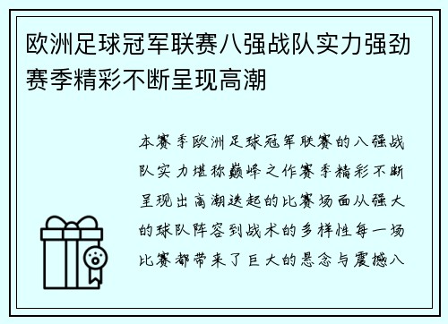 欧洲足球冠军联赛八强战队实力强劲赛季精彩不断呈现高潮
